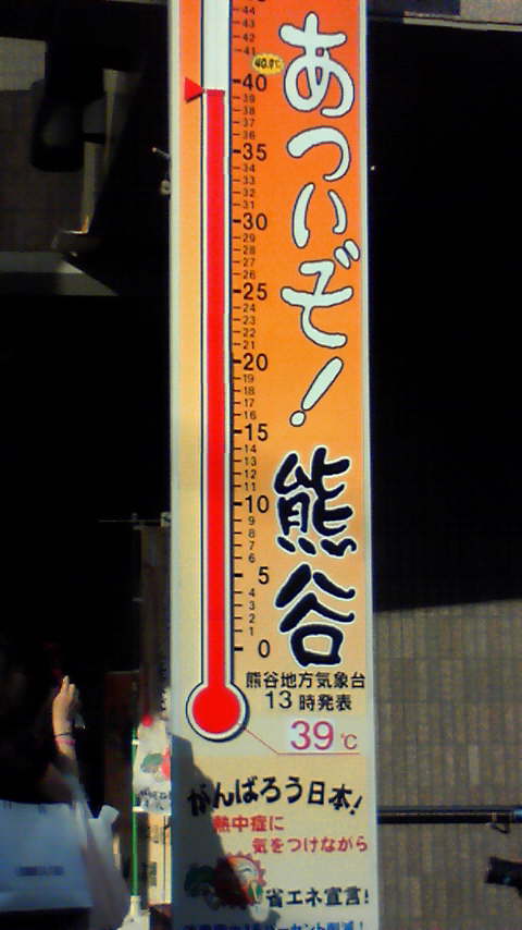 本日、熊谷での気温が39℃でした。熊谷市はボブの隣町です。なので外気温度はほとんど同じ!何よりもこの気温を測っている場所は私の実家の直ぐ裏の気象台(笑)この夏はとても心配ですね・・・。停電にならないようにお願いしたいですね。