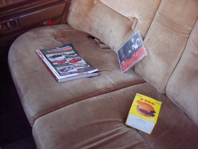飾り気のないスタッフのワーゲン?の後ろの席。チーズバーガーの箱が昭和を感じます。子供の頃に自動販売機コーナーで食べた覚えがあります。