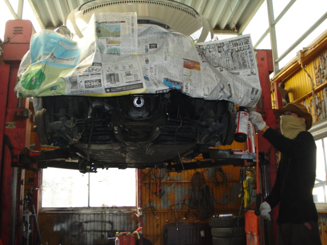 ワーゲンバスのローダウン作業中 2009年10月06日(火)