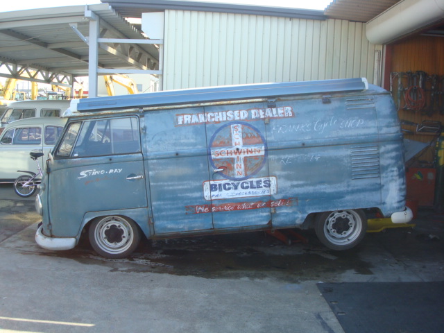 ピンク、シーリングワックスの整備が終わりました。クリーニングをしている途中ですが、次の重整備にも取り掛かります。今回は珍しい右ハンドルのレイトバスです。少しサビも多いですが、修復してお客様に納車となります。もちろん、エアコン&燃焼ヒーターを取り付けて納車予定です。