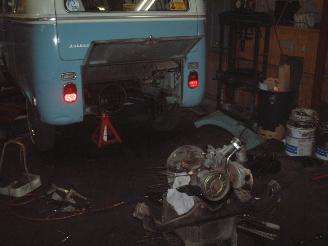後ろのガレージの中は10台のアーリーバスが保管されています。