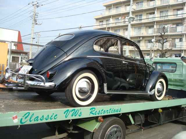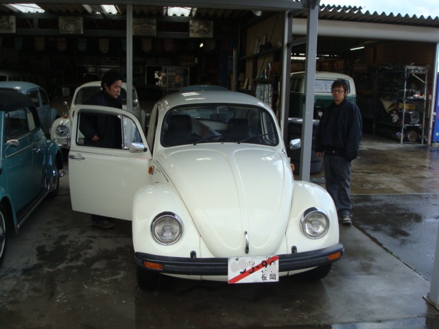 無事にご自宅に着いたようで安心しています。程度のとても良いワーゲンビートルなので心配がありましたが、とても良いガレージに保管されるようで嬉しく思います。右側の黒いゴルフは外に出されてしまったのですね(^^)