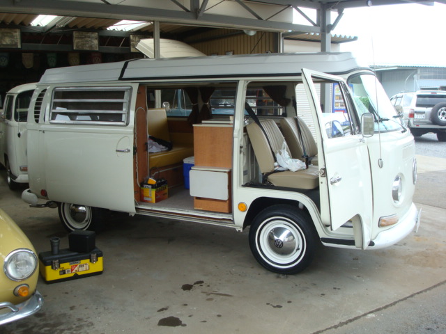 10年くらい前に日本に輸入され、中部地方で乗られた後にボブに流れてきました。そして私の自宅の庭の物置として5年間雨ざらしで熟成され、今回のジャンボリーに自走して行こうと思います。普段は空冷ワーゲンに乗っていない私ですが・・・。少し気合を入れて関越道、首都高速〜お台場へ。走る物置で・・・結構不安がありますが・・・。(笑)