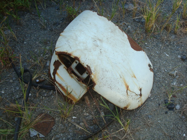 ボブのバックヤードを歩いていたら、解体車の間にカルマンギアのテール部分が落ちていました。貴重品です。6ボルトルックなどに使いましょうか?(笑)